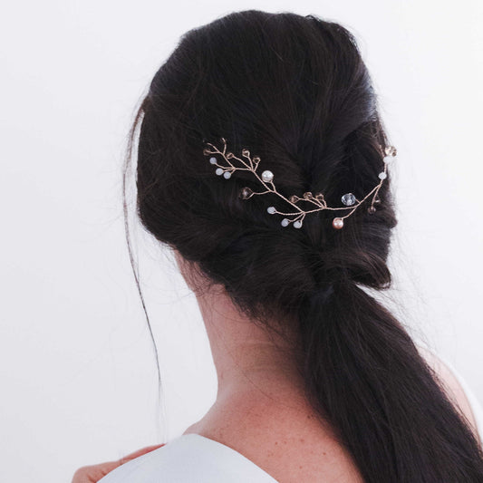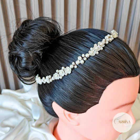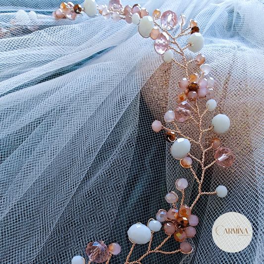 Tocado Pili | Guía Flexible Con Cristales y Perlas