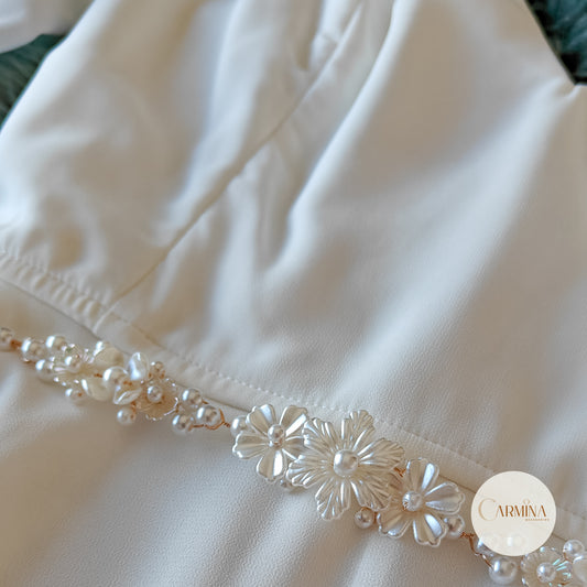 Faja Francy | Guía flexible con delicadas Flores Acrílicas Blancas y Perlas | Dorado y Blanco