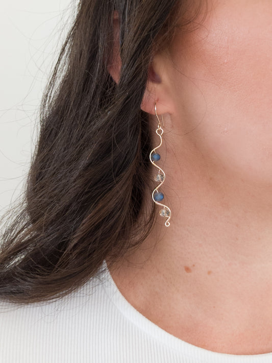 Aretes Mar | Dorados Con Ondas Y Cristales Azules