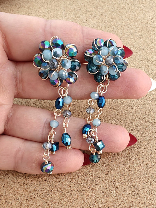 Aretes Eli | Oro Rosa con Cristales Azul Tornasol