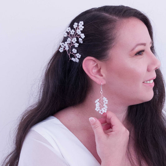 Tocado Bella | Trío de Hadpins y Aretes Plateados con Cristales Deslumbrantes