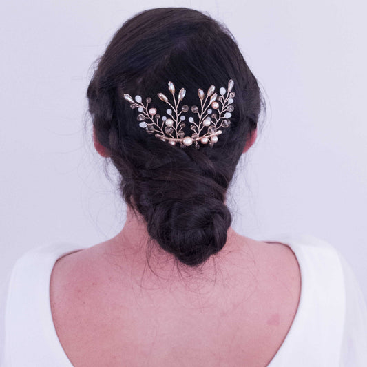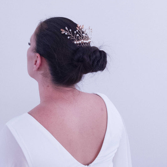 Tocado Freya | Peineta | Elegancia y Sofisticación Con Cristales y Perlas Nácar