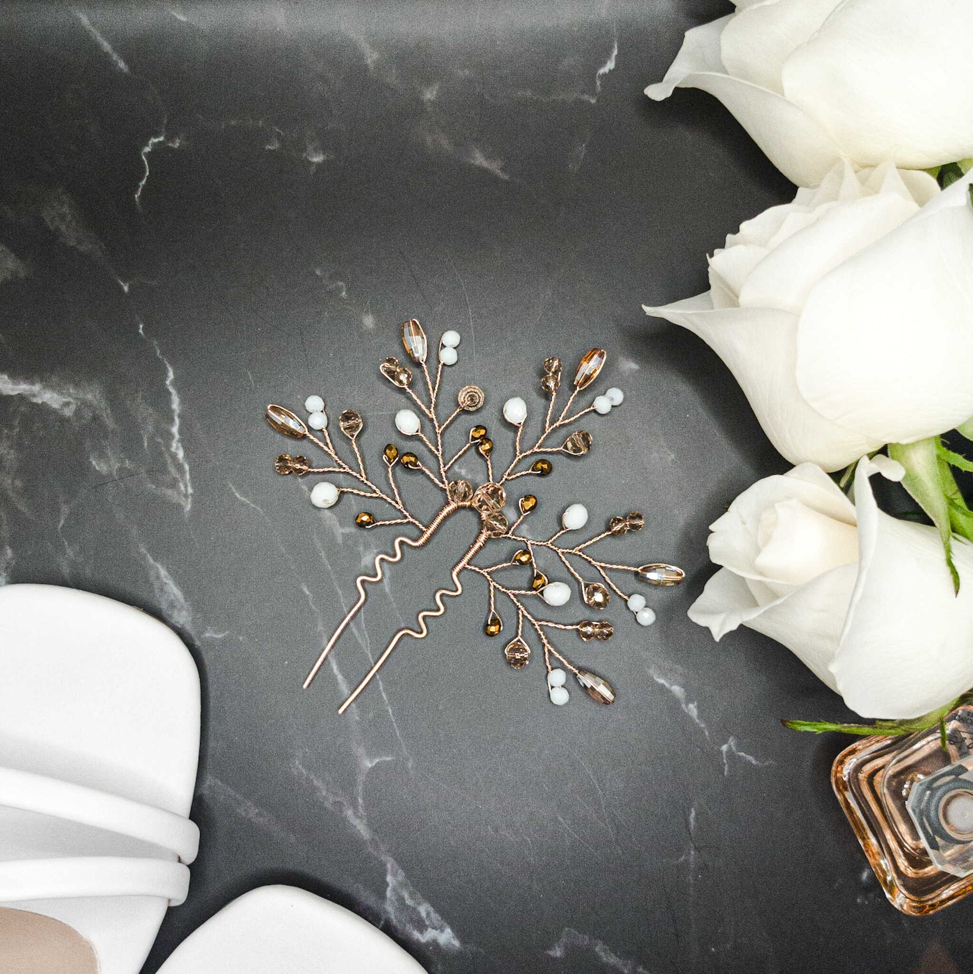 Este headpin solitario es un accesorio versátil que se adapta a la perfección con una amplia gama de estilos de vestidos de novia, desde románticos hasta modernos.